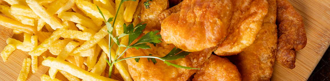 Variety Of Real Pieces Of Chicken In A Golden Crisp Batter With Chips, 3x Dips & Large Bottle Of Juice
